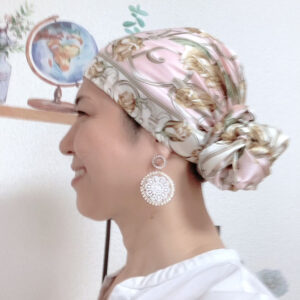 大きなアクセサリーはヘッドスカーフには鉄板アイテムです