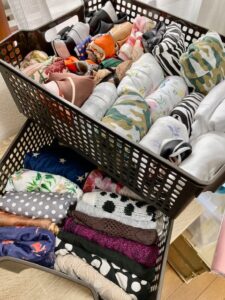 それからニット素材で作る”ケア帽子”のサンプルを沢山作っています。