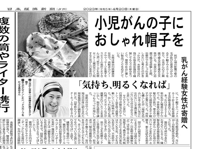 日本経済新聞に掲載されました 2023.04.21 BLOGNEWS 今年はチャレンジの年です‼️ 今日、日本経済新聞の夕刊社会面に 私のことが掲載されました。 どこでしょー‥w 思ったより大きく載っていて 衝撃ですΣ(‘◉⌓◉’) 私はおしゃれが大好きです❤️ 病気になっても、治療の副作用で辛くても ちょっとのキッカケで気持ちが明るくなれば 人は前向きになります。 そのお手伝いが出来ればと活動します。 関連情報 日本経済新聞に掲載されました コメントは受け付けていません。