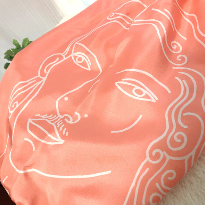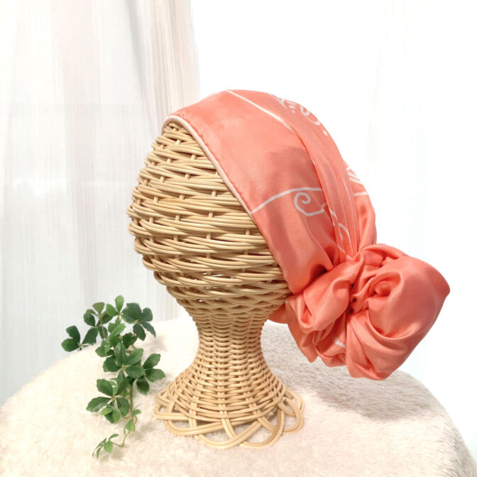 【シルク】SDGsなヘッドスカーフ ”モダンアート・ピンク柄”
