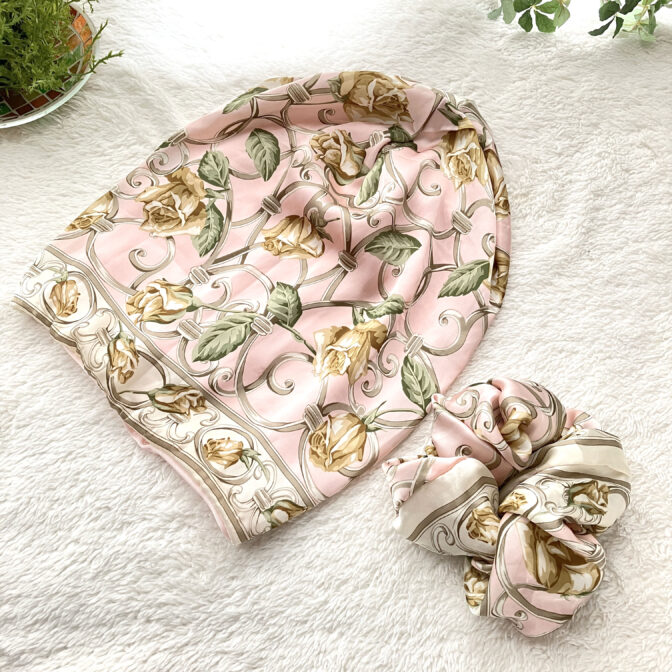 【SALE】ヘッドスカーフ ”モードフラワー柄”