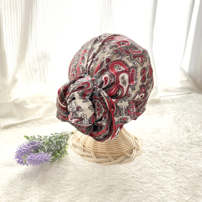 お子さま「ヘッドスカーフ」赤ペイズリーk-007★