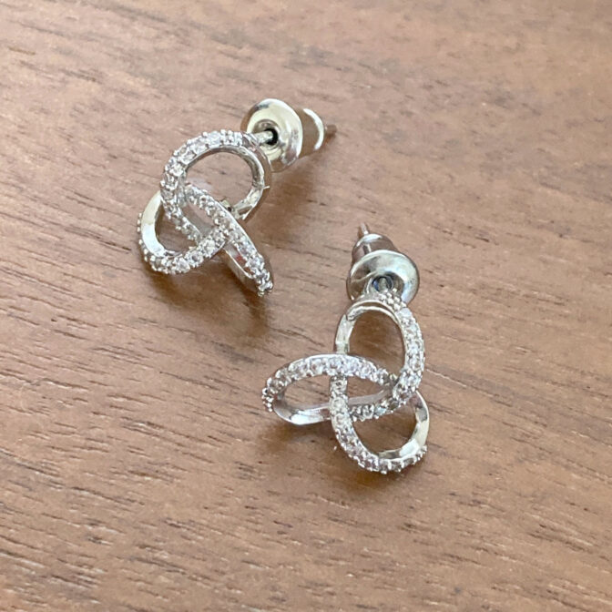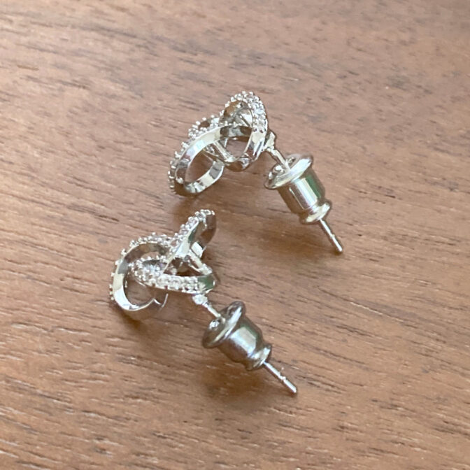 柔らかい曲線にラインストーンを施したピアス。