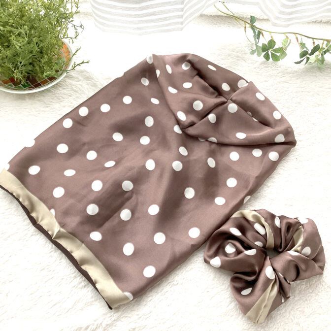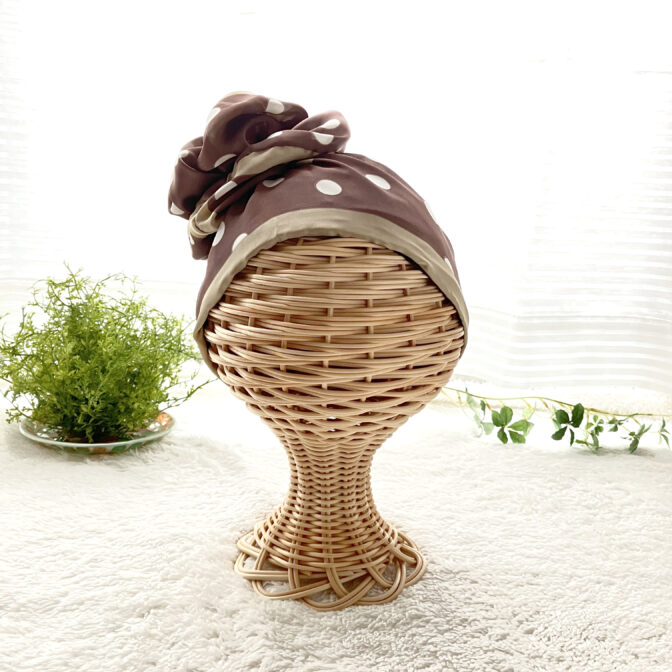 ヘッドスカーフ ”ブラウン・ドット柄”
