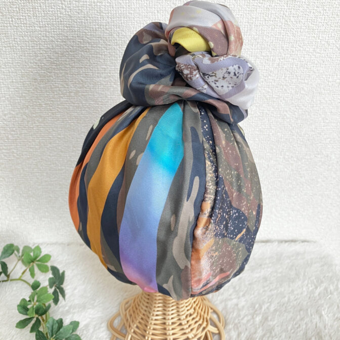 【イタリアンシルク】SDGsなヘッドスカーフ ”カモフラ柄③”